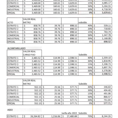 NUEVAS TARIFAS AGOSTO 2022 PAR SERVILENGUPA S.A. E.S.P. URBANO Y RURAL